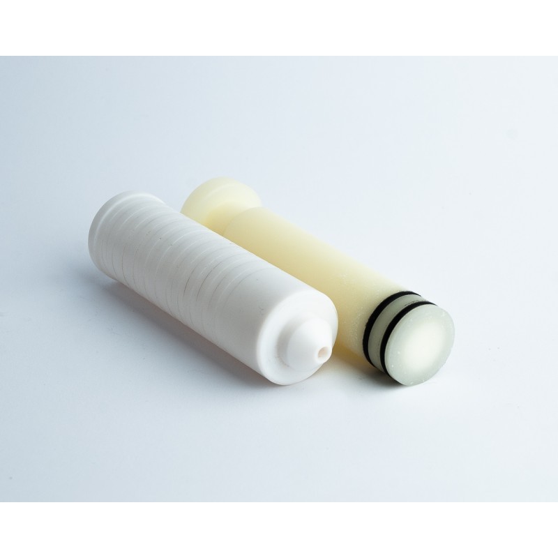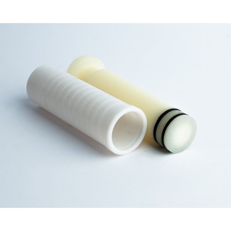 Strzykawka teflonowa do odlewania silikonowych przynęt 30ml. Materiał cylindra - teflon. Materiał tłoka - kaprolon. Strzykawka do odlewania silikonowych przynęt ma 2 uszczelniające pierścienie i rowek na końcu cylindra, do wskazania skrajnego położenia tłoka. Zostało to zrobione, aby zminimalizować prawdopodobieństwo wysunięcia się tłoka, gdy wciągasz do strzykawki gorący silikon do odlewania przynęt.