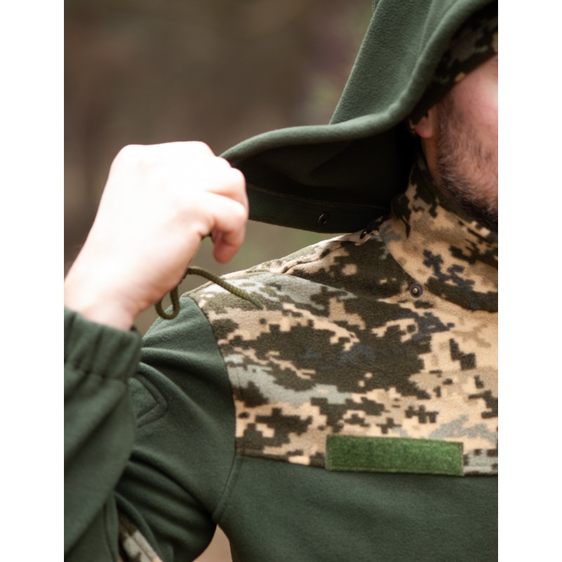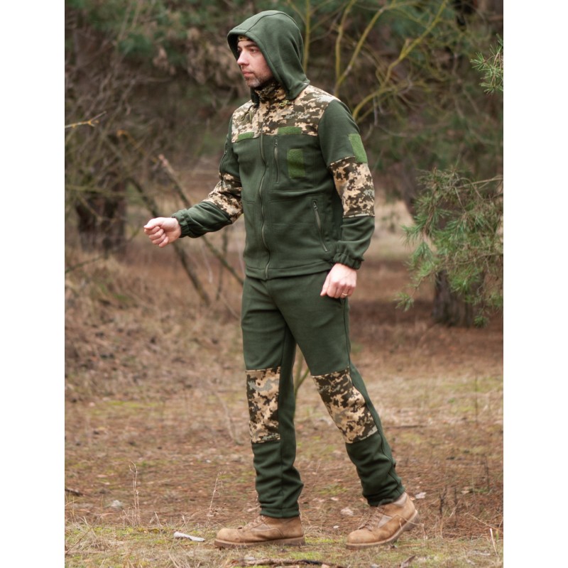 Kombinezon polarowy wykonany jest z polaru klasy "lux" z pokryciem antypillingowym, co gwarantuje wysoką odporność na zużycie. Ten kombinezon wykonany jest z polaru (260 g/m2). Polar jest syntetycznym zamiennikiem wełny. Posiada takie zalety jak izolacja termiczna, przepuszczalność powietrza, elastyczność. A także ogromną różnicą w porównaniu do wełny jest higroskopijność (polar odprowadza parę wodną na zewnątrz, tworząc przytulny mikroklimat dla ciała), lekkość materiału. Polar szybko schnie, jest wystarczająco mocnym i odpornym na zużycie materiałem, hipoalergiczny.